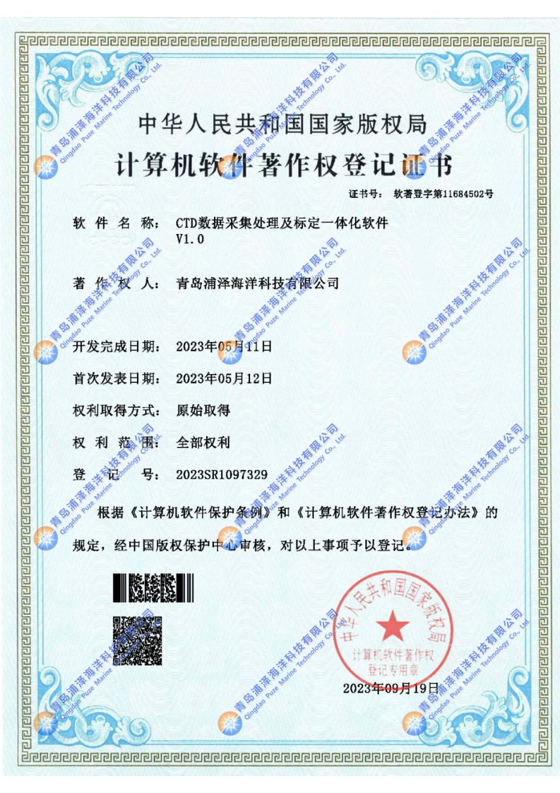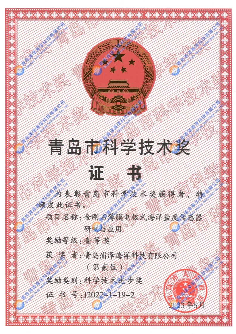 青岛浦泽海洋科技有限公司是山东省科学院海洋仪器仪表研究所的科研成果转化公司,成立于2021年,注册资本4000万元人民币,其中山东省财政专项资金出资1000万元,科研团队成果作价2990万元,是国家级科技型中小企业、国家高新技术企业、创新型中小企业。公司组建由国家级特聘专家和山东省泰山系列人才等组成的高级人才团队,拥有先进的研发和生产设备,通过ISO9001认证,授权专利20余项,获得山东省科技进步二等奖、中国仪器仪表学会科技进步二等奖、青岛市科技进步一等奖等奖励。公司打造自主可控、国内唯一的金刚石薄膜温盐深传感器产品线,实现高性能温盐深传感器的国产化、批量化、定制化、系列化和智能化,产品获得崂山国家实验室、国防科技大学、中国海洋大学、中国船舶、山东经海、深之蓝等单位的广泛应用与好评,为海洋强国战略和全球海洋可持续发展提供关键技术保障。